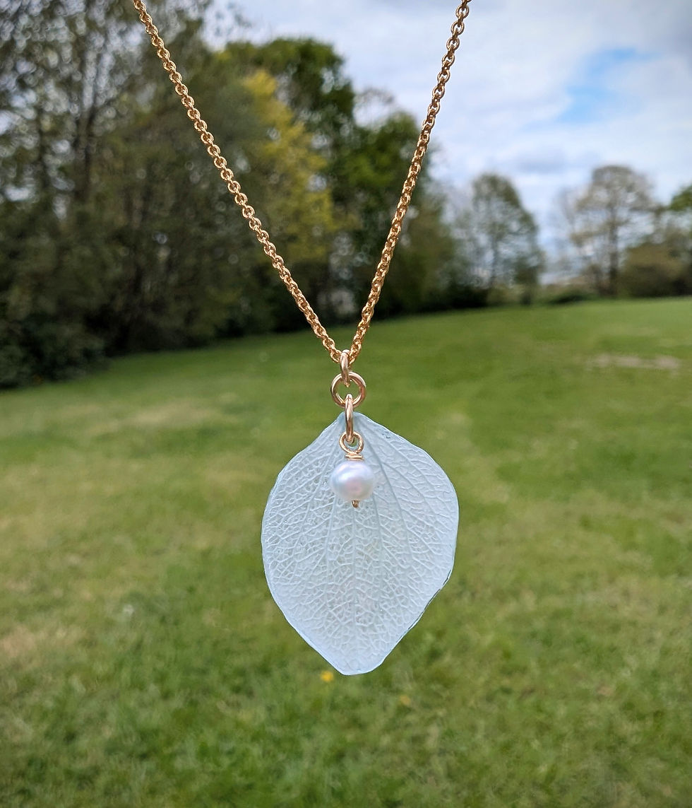 The “Hydrangea” collection celebrates the gentle beauty of real hydrangea petals, preserved by hand and embedded in resin — then set into sterling silver or gold-filled metal jewellery. iida jewellery These pieces range from delicate necklaces to earrings, offering a soft, natural-inspired aesthetic in a variety of hues (like blue, pink, white, or light yellow) depending on the petals used.